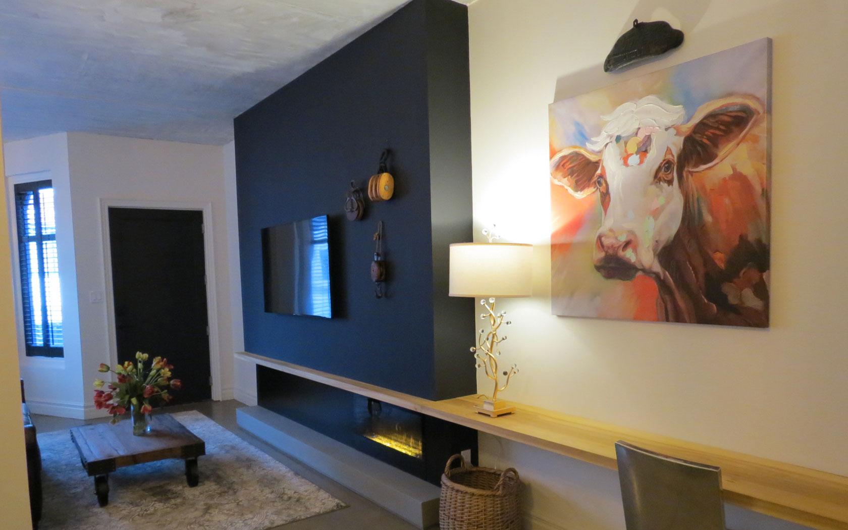 Appointed with industrial furnishings and accessories the Grape and Wine Suite is the ultimate hideaway. After a day exploring Niagara trails relax in the living room curled up by the fireplace with a glass of world class Niagara wine.